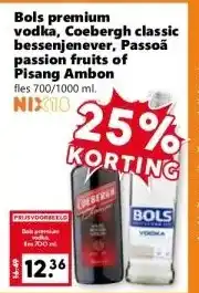 Bols premium vodka, Coebergh classic bessenjenever, Passoã passion fruits of Pisang Ambon
