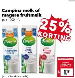 Campina melk of magere fruitmelk korting bij CoopCompact