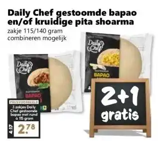 Koop Daily Chef gestoomde bapao en/of kruidige pita shoarma komende week met korting