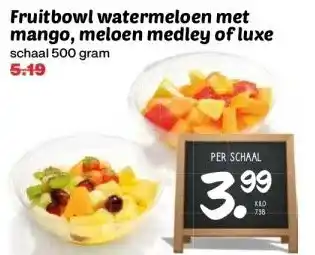 Fruitbowl watermeloen met mango, meloen medley of luxe aanbieding bij CoopCompact – binnenkort verwacht