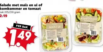 Koop Salade met maïs en ui of komkommer en tomaat komende week met korting