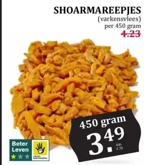De prijs van de SHOARMAREEPJES kan ook teruggevonden worden hierboven op de pagina, samen met de datum van wanneer de aanbieding beschikbaar is. Ook kun je de prijzen in de huidige CoopCompact folder of op de CoopCompact website controleren. De aanbiedingen verzekeren je van het kopen van de CoopCompact producten voor de laagste prijs.