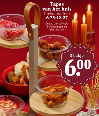 De aanbieding is verkrijgbaar in verschillende winkels, bekijk alle producten om de goedkoopste Tapas van het huis te krijgen. Als je graag wilt kijken of het artikel met meer korting te koop is in een andere winkel, bekijk de categorie 'Supermarkt'. Wellicht vind je deze aanbiedingen ook interessant: Tapas van het huis, Tapas van het huis & Tapas van het huis.