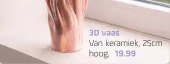 De prijs van de 3D vaas kan ook teruggevonden worden hierboven op de pagina, samen met de datum van wanneer de aanbieding beschikbaar is. Ook kun je de prijzen in de huidige Coppelmans folder of op de Coppelmans website controleren. De aanbiedingen verzekeren je van het kopen van de Coppelmans producten voor de laagste prijs.