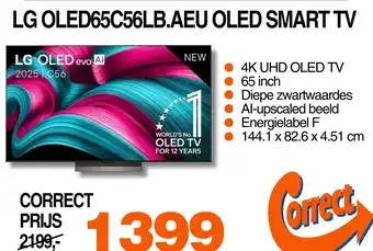 De prijs van de Lg oled65c56lb.aeu oled smart tv kan ook teruggevonden worden hierboven op de pagina, samen met de datum van wanneer de aanbieding beschikbaar is. Ook kun je de prijzen in de huidige Correct folder of op de Correct website controleren. De aanbiedingen verzekeren je van het kopen van de Correct producten voor de laagste prijs.