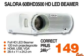 Salora 60BHD3500 HD led beamer aanbieding en online acties bij Correct