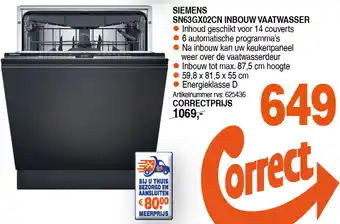 Nu in de aanbieding bij Correct: SIEMENS SN63GX02CN INBOUW VAATWASSER✅ Actie geldig van 19-04 t/m 25-04.