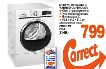 Nu in de aanbieding bij Correct: SIEMENS WT48XM40FG WARMTEPOMPDROGER✅ Actie geldig van 19-04 t/m 25-04.