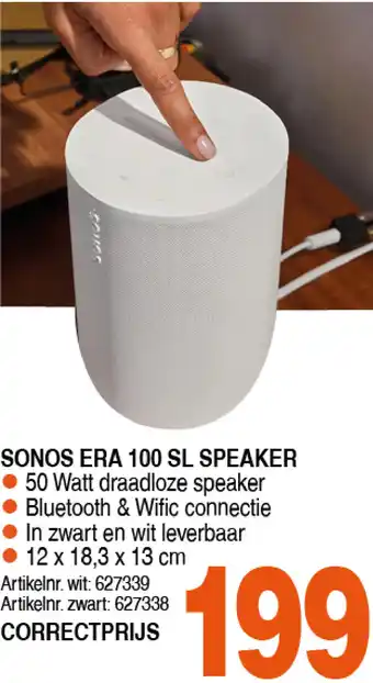 De prijs van de SONOS ERA 100 SL SPEAKER kan ook teruggevonden worden hierboven op de pagina, samen met de datum van wanneer de aanbieding beschikbaar is. Ook kun je de prijzen in de huidige Correct folder of op de Correct website controleren. De aanbiedingen verzekeren je van het kopen van de Correct producten voor de laagste prijs.