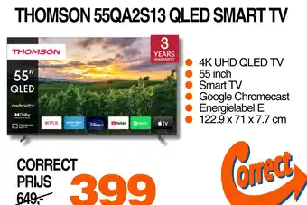 De prijs van de Thomson 55qa2s13 qled smart tv kan ook teruggevonden worden hierboven op de pagina, samen met de datum van wanneer de aanbieding beschikbaar is. Ook kun je de prijzen in de huidige Correct folder of op de Correct website controleren. De aanbiedingen verzekeren je van het kopen van de Correct producten voor de laagste prijs.