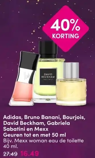 Adidas, Bruno Banani, Bourjois, David Beckham, Gabriela Sabatini en Mexx korting bij DA