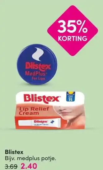 De aanbieding is verkrijgbaar in verschillende winkels, bekijk alle producten om de goedkoopste Blistex te krijgen. Als je graag wilt kijken of het artikel met meer korting te koop is in een andere winkel, bekijk de categorie 'Drogist en Parfumerie'. Wellicht vind je deze aanbiedingen ook interessant: Blistex, Blistex Classic lippenbalsem & Blistex medplus stick 4,25gr.