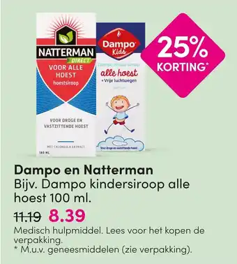 Dampo en Natterman bieden een breed assortiment hoestsiropen voor alle soorten hoest, van droge tot vastzittende hoest. Met toevoeging van calendula extract voor vrije luchtwegen. Profiteer nu van 25% korting op bijvoorbeeld Dampo kindersiroop alle hoest 100 ml. Medisch hulpmiddel dat effectief werkt bij hoestklachten. Let op: lees voor het kopen de verpakking. Actie geldt niet voor geneesmiddelen. Dampo Kids is speciaal ontwikkeld voor kinderen en zorgt voor verlichting bij hoest. Kies voor Dampo en Natterman voor directe verlichting van hoestklachten en een gezonde ademhaling. Bestel nu en ervaar zelf de kracht van deze hoestsiropen.