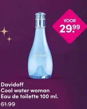 De prijs van de Davidoff Cool water woman kan ook teruggevonden worden hierboven op de pagina, samen met de datum van wanneer de aanbieding beschikbaar is. Ook kun je de prijzen in de huidige DA folder of op de DA website controleren. De aanbiedingen verzekeren je van het kopen van de DA producten voor de laagste prijs.
