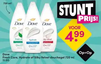 Nu in de aanbieding bij DA: Dove Fresh Care, Hydrate of Silky Velvet douchegel✅ Actie geldig van 29-12 t/m 2-01.