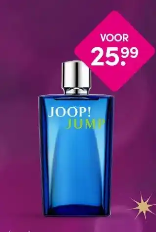 De aanbieding is verkrijgbaar in verschillende winkels, bekijk alle producten om de goedkoopste Joop! Jump te krijgen. Als je graag wilt kijken of het artikel met meer korting te koop is in een andere winkel, bekijk de categorie 'Drogist en Parfumerie'. Wellicht vind je deze aanbiedingen ook interessant: Joop! joop! jump eau de toilette, Joop! jump eau de toilette spray 100ml & Joop!.