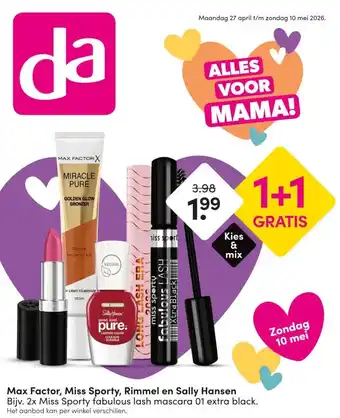 Nu in de aanbieding bij DA: Max Factor, Miss Sporty, Rimmel en Sally Hansen✅ Actie geldig van 27-04 t/m 2-05.