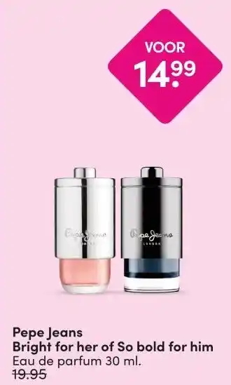 Nu in de aanbieding bij DA: Pepe Jeans Bright for her of So bold for him✅ Actie geldig van 9-03 t/m 15-03.