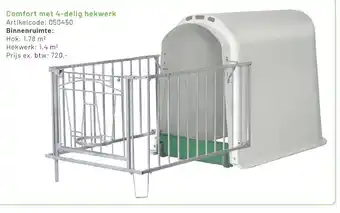 De prijs van de Comfort met 4-delig hekwerk kan ook teruggevonden worden hierboven op de pagina, samen met de datum van wanneer de aanbieding beschikbaar is. Ook kun je de prijzen in de huidige De Boer Drachten folder of op de De Boer Drachten website controleren. De aanbiedingen verzekeren je van het kopen van de De Boer Drachten producten voor de laagste prijs.