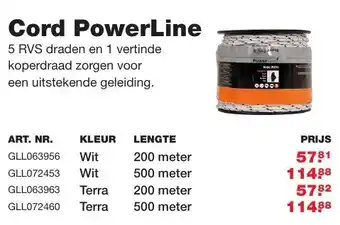 De aanbieding is verkrijgbaar in verschillende winkels, bekijk alle producten om de goedkoopste Cord powerline te krijgen. Als je graag wilt kijken of het artikel met meer korting te koop is in een andere winkel, bekijk de categorie 'Bouwmarkt'. Wellicht vind je deze aanbiedingen ook interessant: Ringisolator xdi hout met kern, aanbieding 2 & aanbieding 3.
