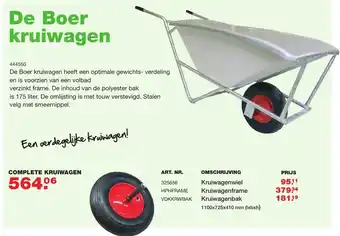 De aanbieding is verkrijgbaar in verschillende winkels, bekijk alle producten om de goedkoopste De boer kruiwagen te krijgen. Als je graag wilt kijken of het artikel met meer korting te koop is in een andere winkel, bekijk de categorie 'Bouwmarkt'. Wellicht vind je deze aanbiedingen ook interessant: Junior kruiwagen, Kruiwagen 80 ltr & Kruiwagen tk 100.