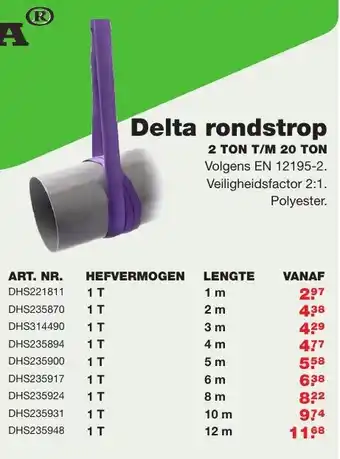 Delta rondstrop 2 TON T/M 20 TON Volgens EN 12195-2