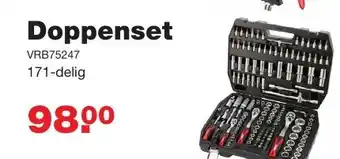 De VRB75247 doppenset is een uitgebreide set met maar liefst 171 delen, waardoor je altijd het juiste gereedschap bij de hand hebt voor elke klus. Deze set bevat diverse doppen in verschillende maten, verlengstukken, ratels en andere handige accessoires. De doppen zijn gemaakt van hoogwaardig materiaal en zijn geschikt voor zowel professioneel gebruik als voor de doe-het-zelver. Met deze doppenset kun je moeiteloos bouten en moeren los- en vastdraaien, ongeacht de grootte of vorm. De set wordt geleverd in een handige opbergkoffer, zodat je alles netjes bij elkaar kunt houden en eenvoudig kunt meenemen naar elke klus. Kortom, de VRB75247 doppenset is een onmisbare toevoeging aan elke gereedschapscollectie.