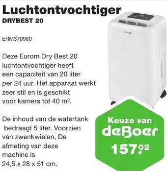 Luchtontvochtiger DRYBEST 20 aanbieding bij De Boer Drachten – binnenkort verwacht