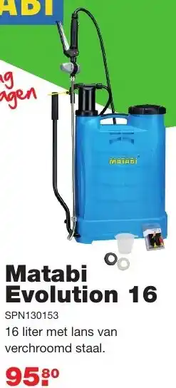 De Boer Drachten biedt naast de Matabi evolution een ruime collectie producten aan. Houd de wekelijkse De Boer Drachten folder in de gaten om de beste aanbiedingen en acties te vinden. Naast Matabi evolution, kunt u ook de volgende aanbiedingen vinden: Matabi super, Matabi polita 7 & Evolution Aqua Varipump 10000.