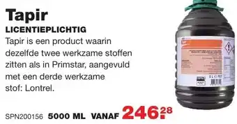 zitten als in Primstar, aangevuld met een derde werkzame stof: Lontrel. SPN200156 5000 ML VANAF 24628 LICENTIEPLICHTIG Tapir is een product waarin dezelfde twee werkzame stoffen