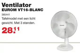 EUROM VT16-BLANC 385441 Tafelmodel met een licht gewicht. Met 3 standen. 28.11