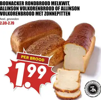 Boonacker rondbrood melkwit, allinson volkorenbrood of allinson volkorenbrood met zonnepitten aanbieding en online acties bij De Boerenschuur
