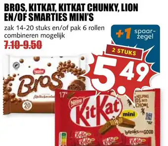 Bros, kitkat, kitkat chunky, lion en/of smarties mini's aanbieding en online acties bij De Boerenschuur