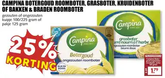 Koop Campina botergoud roomboter, grasboter, kruidenboter of bakken & braden roomboter komende week met korting