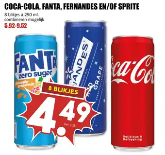 Frisdrank Mix 8 blikjes - Coca-Cola, Fanta, Fernandes en/of Sprite