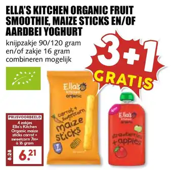 Ella's kitchen organic fruit smoothie, maize sticks en/of aardbei yoghurt 90 - 120 gram 3+1 gratis
