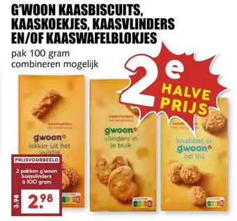 G'woon kaasbiscuits, kaaskoekjes, kaasvlinders en/of kaaswafelblokjes aanbieding bij De Boerenschuur