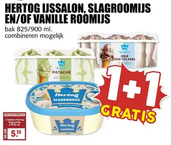 • Prijsvoorbeeld: 2 bakken Hertog slagroomijs à 900 mL
