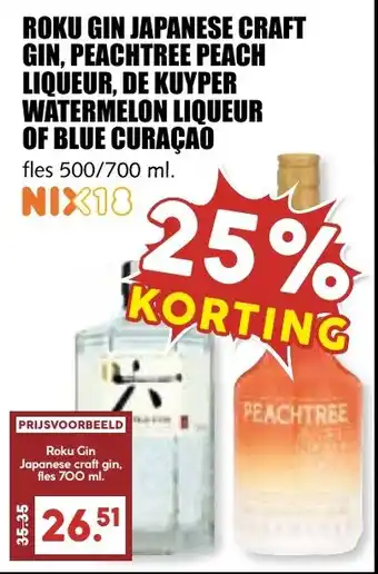 Roku gin japanese craft gin, peachtree peach liqueur, de kuyper watermelon liqueur of blue curaçao korting bij De Boerenschuur