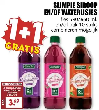 Slimpie siroop en/of waterijsjes 2 x 650 ml 1+1 GRATIS