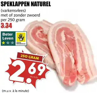 Geniet van heerlijke speklappen naturel van varkensvlees, verkrijgbaar per 250 gram. Deze speklappen zijn zorgvuldig geselecteerd en hebben de keuze om met of zonder zwoerd te worden bereid. Met een prijs van slechts 3.34 per 250 gram, bieden wij kwalitatief varkensvlees dat voldoet aan de Beter Leven normen voor dierenbescherming. Elke hap is een ware smaaksensatie en een verantwoorde keuze voor liefhebbers van varkensvlees. Deze speklappen zijn verpakt per 250 gram en zijn ideaal voor een smakelijke maaltijd. Profiteer van onze aanbieding en geniet van de heerlijke smaak van deze speklappen naturel. Let op: de prijs is per 250 gram, met een kiloprijs van 10.76 (m.u.v. à la minute).