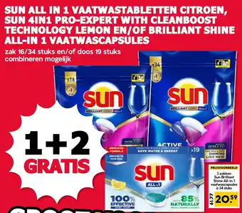 Sun All In 1 Vaatwastabletten Citroen, Sun 4in1 Pro-Expert With Cleanboost Technology Lemon En/Of Brilliant 1+2 gratis