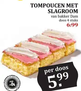 De prijs van de Tompoucen Met Slagroom kan ook teruggevonden worden hierboven op de pagina, samen met de datum van wanneer de aanbieding beschikbaar is. Ook kun je de prijzen in de huidige De Boerenschuur folder of op de De Boerenschuur website controleren. De aanbiedingen verzekeren je van het kopen van de De Boerenschuur producten voor de laagste prijs.
