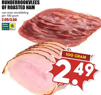 Versafdeling: Runderrookvlees of Roasted Ham per 100 gram