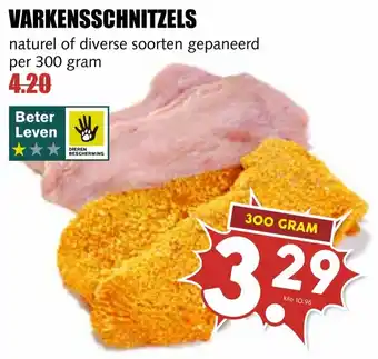 Varkensschnitzels naturel of gepaneerd per 300 gram