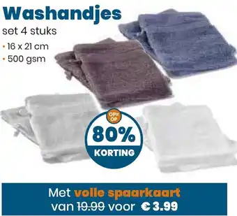 Set 4 stuks washandjes met 80% korting