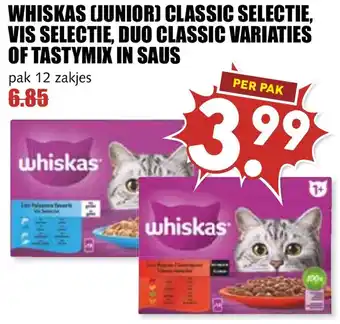 Whiskas (Junior) Classic Selectie, Vis Selectie, Duo Classic Vvariaties of Tastymix in Saus aanbieding en online acties bij De Boerenschuur
