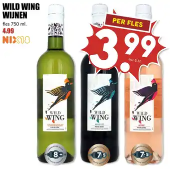 Wild Wing Wijnen - Chardonnay, Merlot en Rosé - 750 ml fles voor 4.99