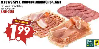 Vers Zeeuws spek, Coburgerham of salami van 100 gram voor 1.99