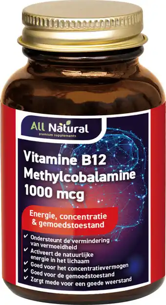 Actuele All natural vitamine b12 methylcobalamine 1000mcg kauwtabletten 90vcp aanbieding bij De Online Drogist van 20-11 t/m 1-01.